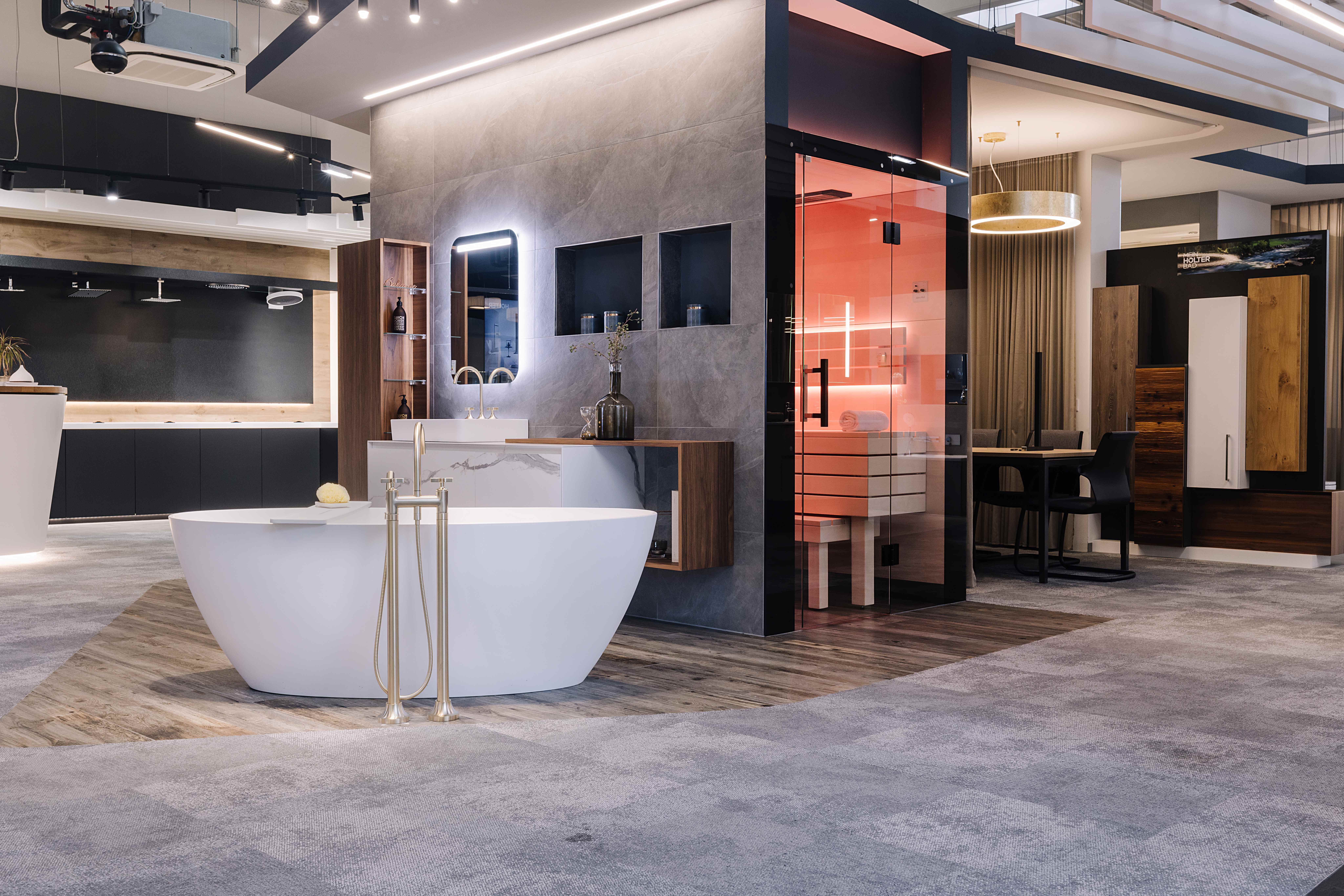 Mein HOLTER-Bad steht für Komfort, Design und Individualität — und inspiriert zu Badlösungen, die exakt zu Ihren Bedürfnissen passen. Saunen, Infrarot- und Dampfbäder verwöhnen Körper und Geist, Whirlpools für innen und außen schaffen persönliche Rückzugsorte der Entspannung. In der Badboutique finden sich stilvolle Accessoires, Textilien und praktisches Zubehör für Wanne, Dusche oder Sauna. Mit 150 Jahren Branchenerfahrung ist HOLTER ein verlässlicher Partner, unterstützt von Topmarken wie Catalano, Villeroy & Boch, Geberit, Falper, Hansgrohe, Dornbracht, Fantini u. v. a.