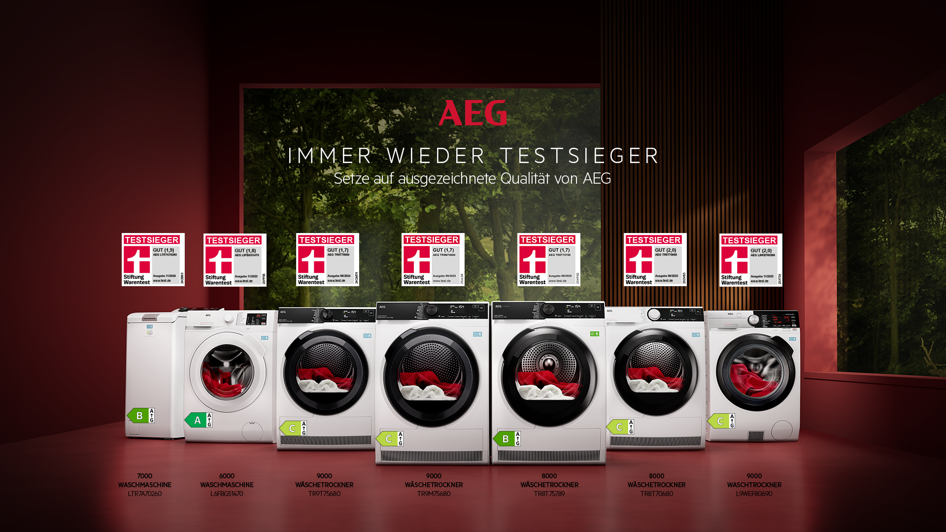 Die aktuelle Ausgabe 09/2025 der Stiftung Warentest unterzog insgesamt 16 Wäschetrockner einer kritischen Prüfung. Dabei konstatiert die Institution, dass die Trockner von AEG am besten sind, und zeichnet beide Geräte als Testsieger mit der Gesamtbewertung 1,7 („Gut“) aus. Diese setzt sich aus den Resultaten in den Kategorien „Trocknen“, „Handhabung“, „Umwelteigenschaften“ sowie „Sicherheit und Verarbeitung“ zusammen.