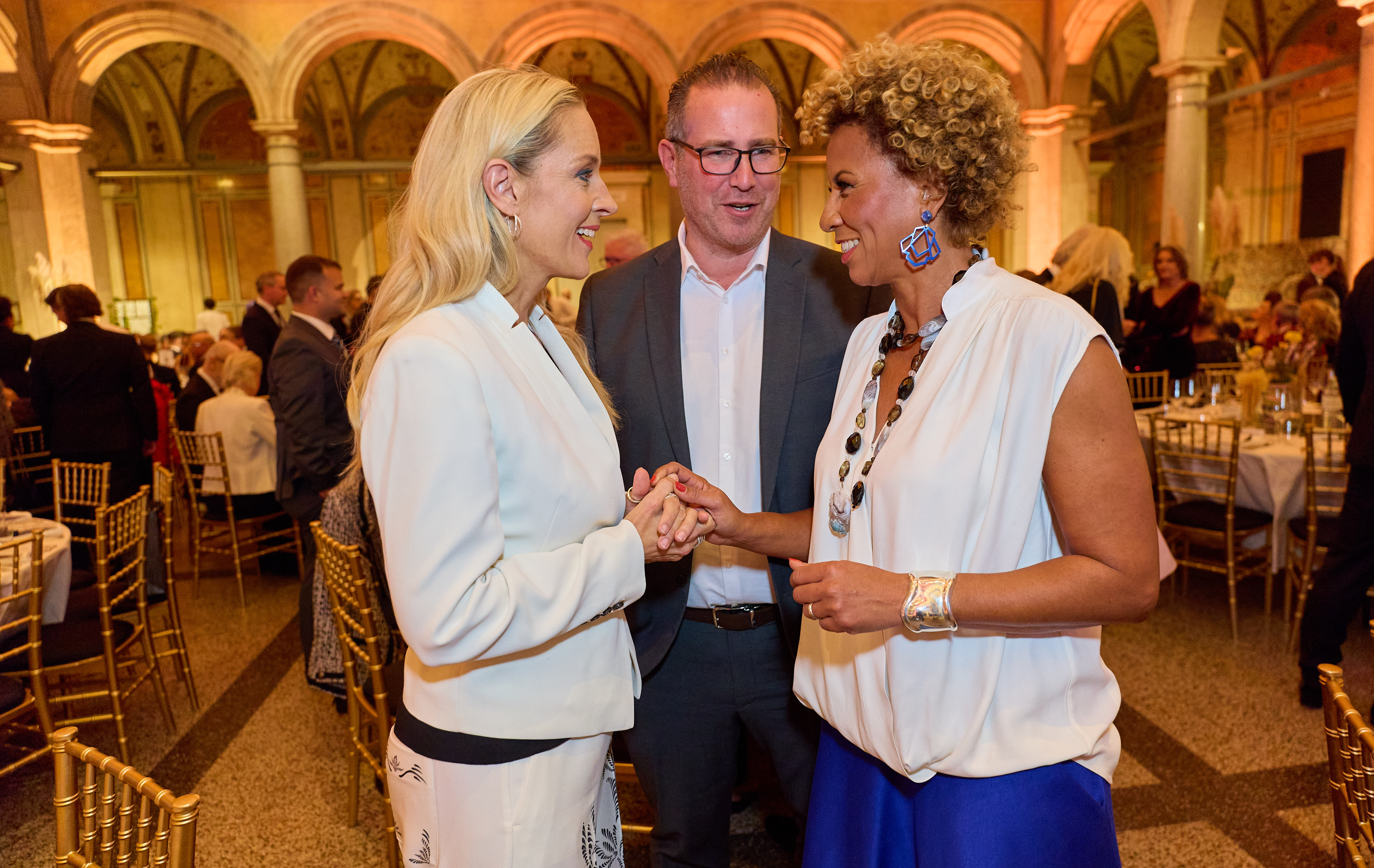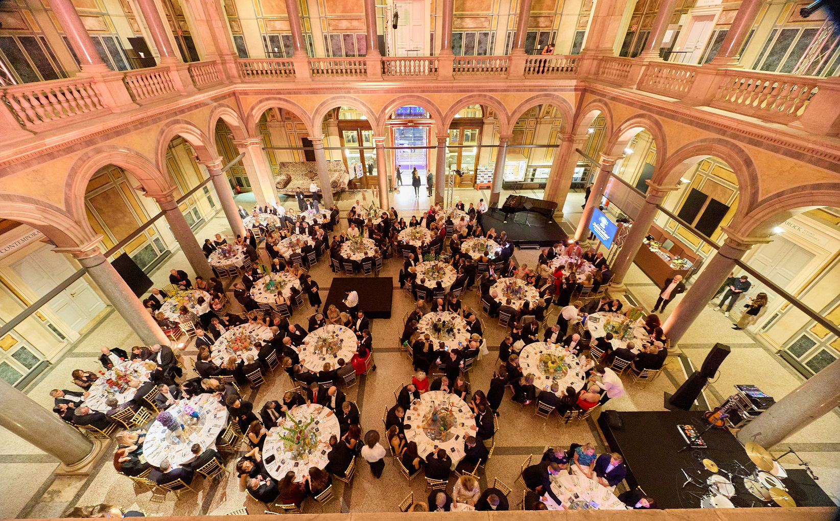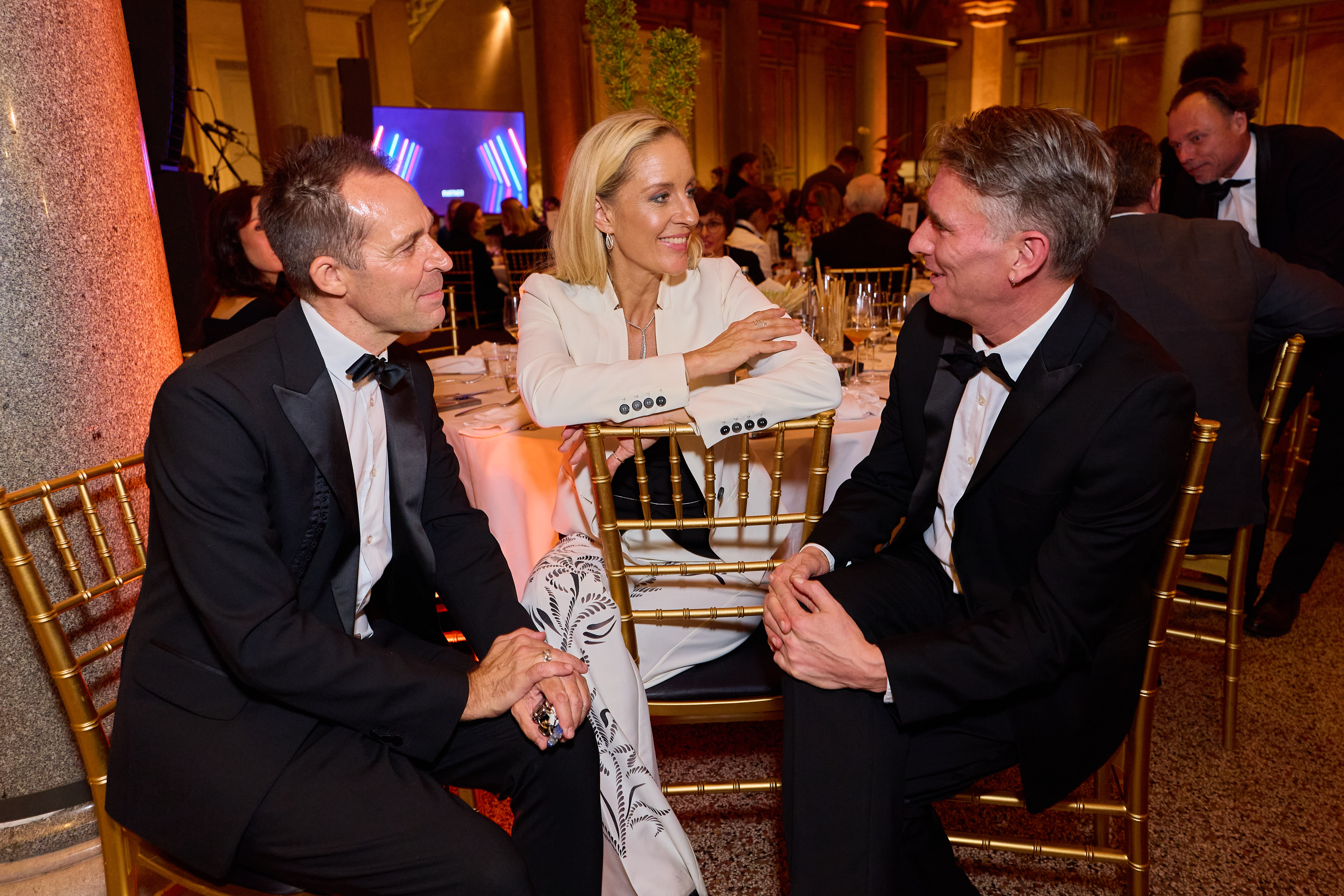 Der Gala-Abend hat in der imposanten Säulenhalle, die zur Live-Bühne für wunderbare künstlerischen Darbietungen mutierte, stattgefunden. Und hier haben die geladenen Gäste in der Galerie auch coole Drinks in den unterschiedlichsten Farben genossen, bevor sie an den von Blumenkünstler Andreas Bamesberger und seiner Zweigstelle kreativ inszenierten runden Tische Platz genommen haben. Moderiert wurde der Abend mit einleitenden Worten zu den Live-Performances, die zwischen den einzelnen Gängen des von Marco Simonis zusammengestellten Menüs mit passender Weinbegleitung des Premium-Weingutes K+K Kirnbauer stattfanden, von Arabella Kiesbauer.