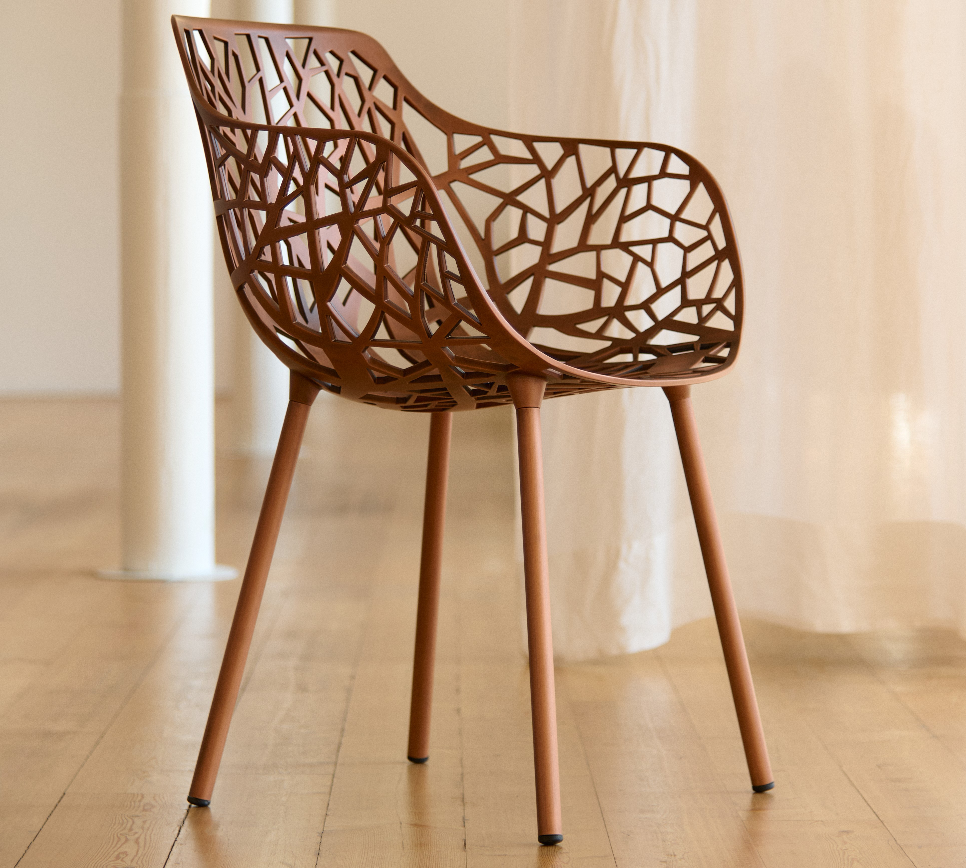 An einem Ort, an dem die Metallverarbeitung ein fester Bestandteil der örtlichen Kultur ist, ist es Fast gelungen, technisches und handwerkliches Know-how in eine zeitgenössische Formsprache zu verwandeln, die Industrie, Design und Kultur miteinander verbindet. Und um dieses Jubiläum angemessen zu feiern, präsentiert Fast die Forest Limited Edition, eine Neuauflage des im Jahr 2007 von Robby Cantarutti & Partners entworfenen Stuhls. Forest wurde im Laufe der Zeit zu einem der Bestseller der Marke und verkörpert auf ideale Weise die Verbindung zwischen Natur und Design, zwischen Handwerkskunst und Industrie sowie zwischen Form und Leichtigkeit.