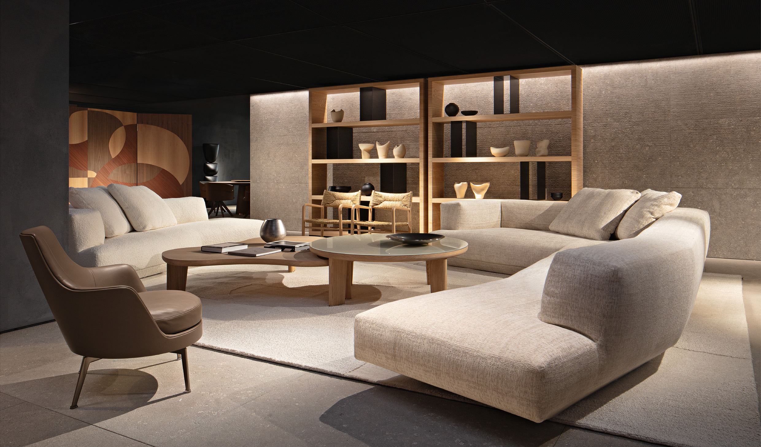 Zurzeit ist in Wien die größte Flexform Ausstellung zu sehen, primär Modelle aus der Hand von Antonio Citterio. Er ist Architekt, Designer und Perfektionist, wie kaum ein anderer hat er das italienische Design geprägt. Das neueste Keypiece, das Loungescape Sofa, besticht durch Sitzkomfort, Modularität und Leichtigkeit trotz kompakter Bauweise. Alle Modelle sind mit den neuesten Stoffen in warmen, natürlichen Farbtönen bezogen.