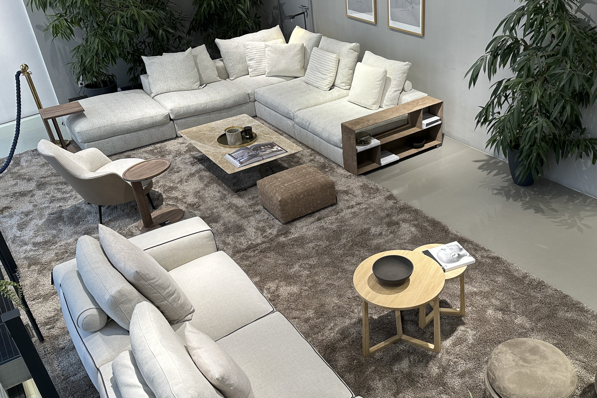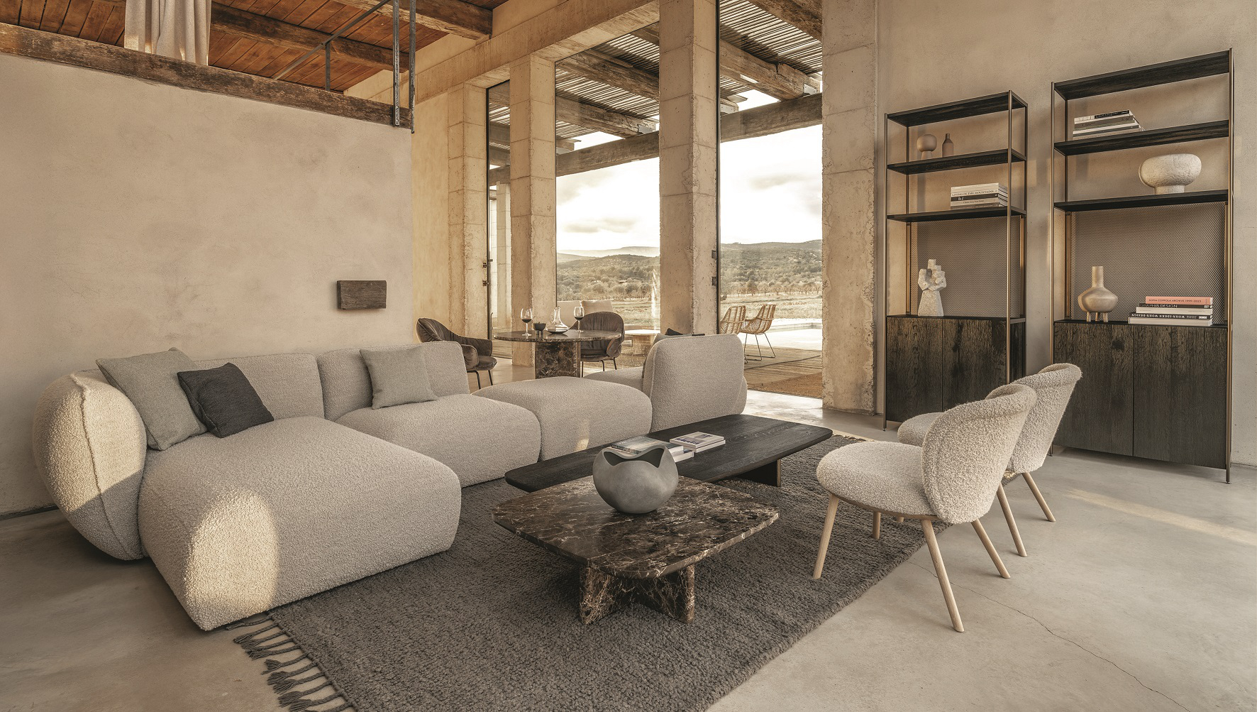 Warme Farbtöne dominieren auch die neuen Möbel von Freifrau und Janua, warme organische Polstermöbel und neue Marmorfarben in Kontrast zu dunklem Massivholz. Low Dining, High Dining, für gemütliche Stunden im Erker oder perfekte Barplätze in der Küche - diese neuen Sitzhöhen werden immer beliebter in raffiniert gestalteten Räumen, zuletzt auch in Kombination mit den modularen Sofas auf der Home Depot präsentiert.