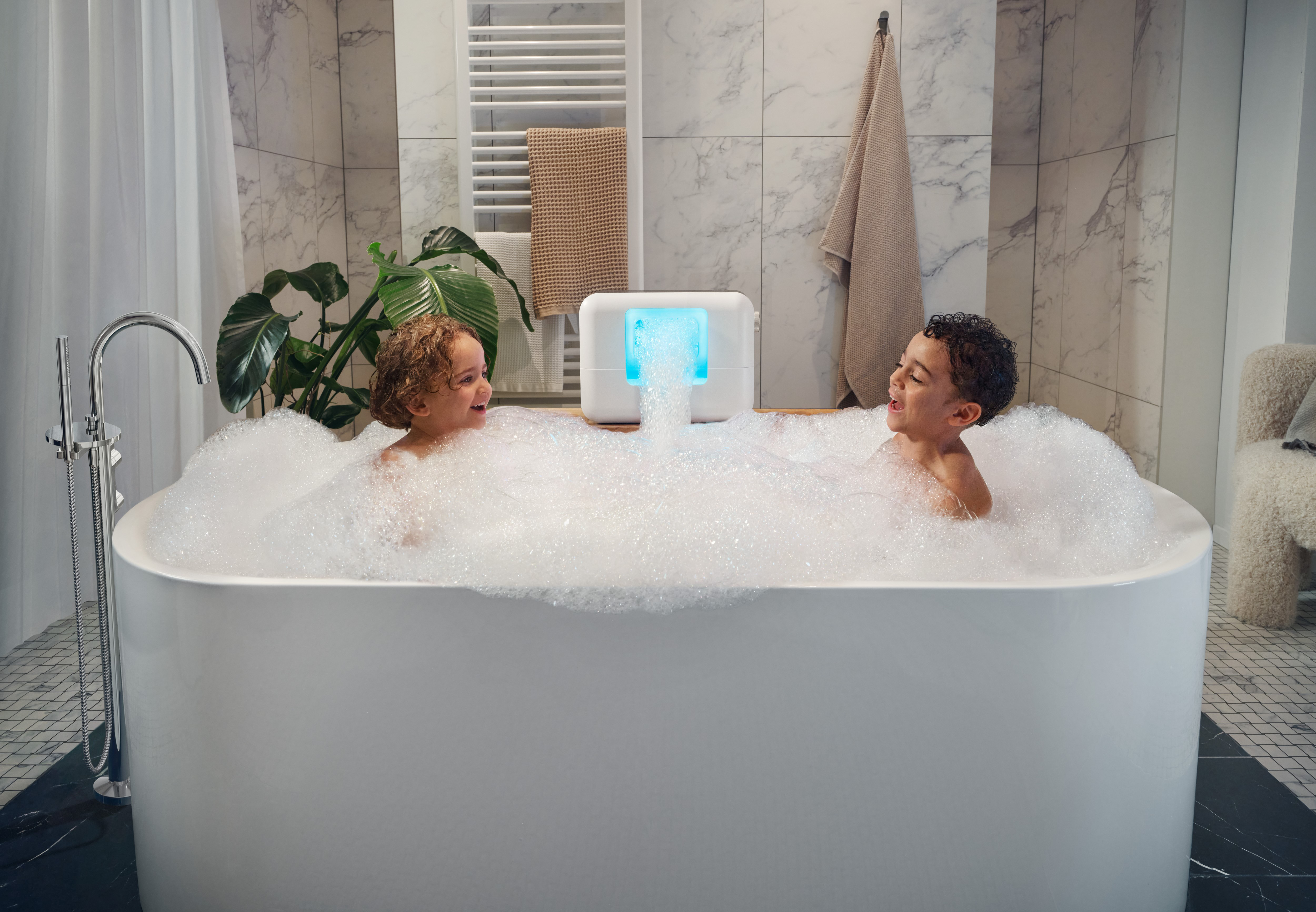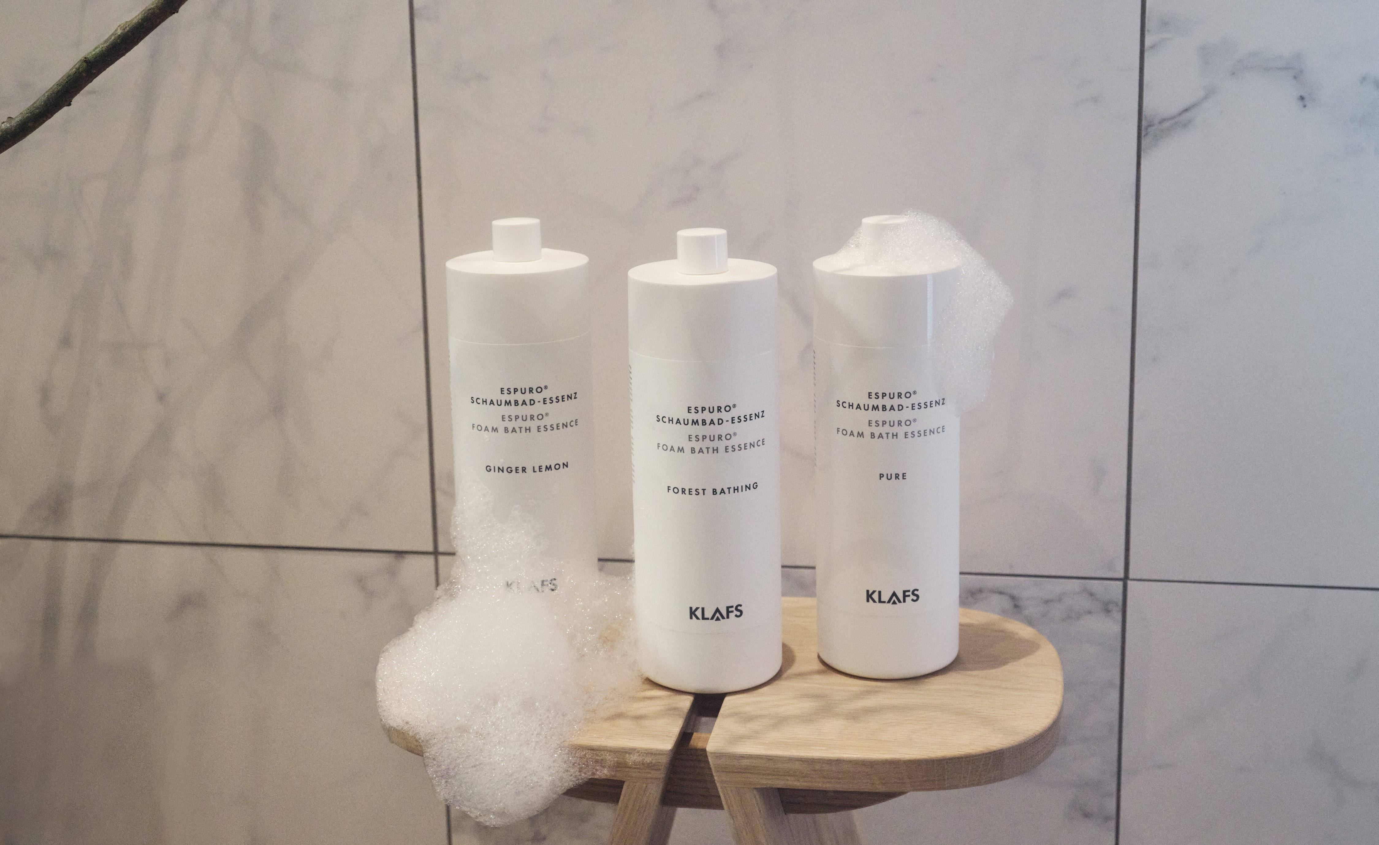 Mit vier austauschbaren Aufsätzen lassen sich die Schaumwolken individuell erleben – wahlweise als drehbarer Schaumjet in der Dusche und oder als voluminöser Schaumteppich in der Badewanne. Die eigens entwickelte Schaumbad-Essenz in den Varianten PURE, GINGER LEMON und FOREST BATHING pflegt selbst sensible Haut besonders sanft und reichhaltig. Sie basiert auf zertifizierter Naturkosmetik, ist vegan, dermatologisch getestet und besonders hautverträglich. Sie verwandelt das Bad in eine kleine Auszeit voller Pflege und Achtsamkeit.